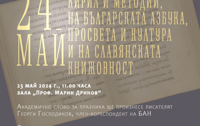 Българската академия на науките ще отбележи 24 май – Деня на светите братя Кирил и Методий, на българската азбука, просвета и култура и на славянската книжовност с тържествено събрание.  Събитието [...]