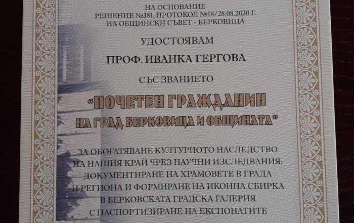 Проф. Иванка Гергова от Института за изследване на изкуствата на БАН беше удостоена със званието „Почетен гражданин на град Берковица и общината“. Церемонията се състоя на 8 септември – Рождество на Пресвета Богородица, денят, в [...]