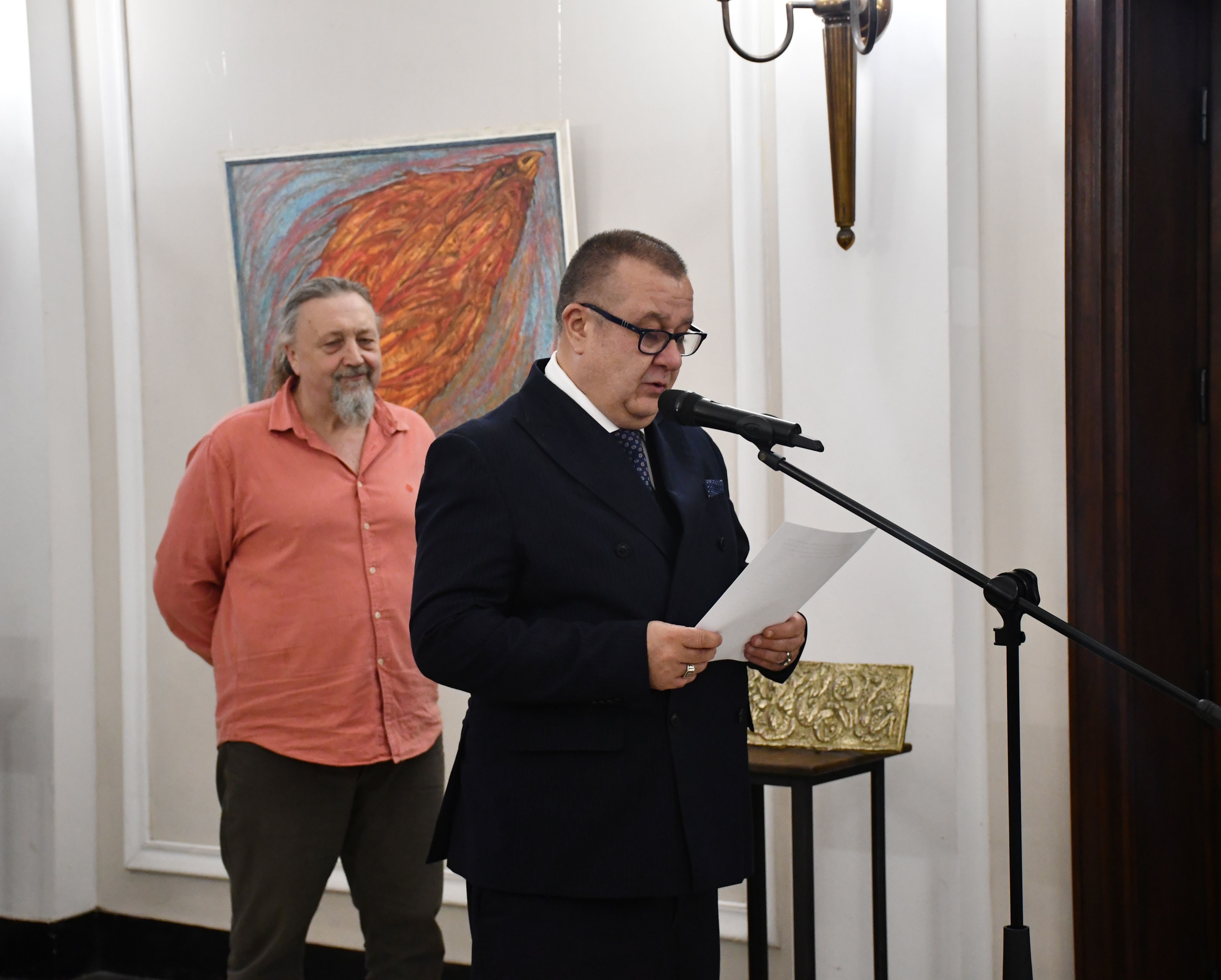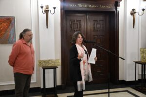 “The themes of Ivailo Kamenov’s work are always related to Orthodox Christianity but they also look to the Far East and always with undisguised humanism. It is precisely this love for humanity that is the distinctive feature of this artist. In the artist’s world, there are people, and even the colorful spots and impressions are somehow human,” said Prof. Emmanuel Moutafov, Vice-President of BAS, in his speech at the opening of the exhibition. He introduced the curator of the exhibition, Assoc. Prof. Maria Miteva from the Institute of Art Studies, who, together with the author, selected works that are indicative of his creativity.