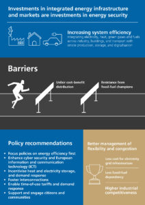 - Прилагането на мерки за управление на гъвкавостта на електроенергийната мрежа и подходящи механизми за регулиране на напрежението и честотата намалява зависимостта от резервното електропроизводство на базата на изкопаеми горива;