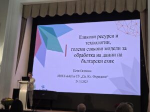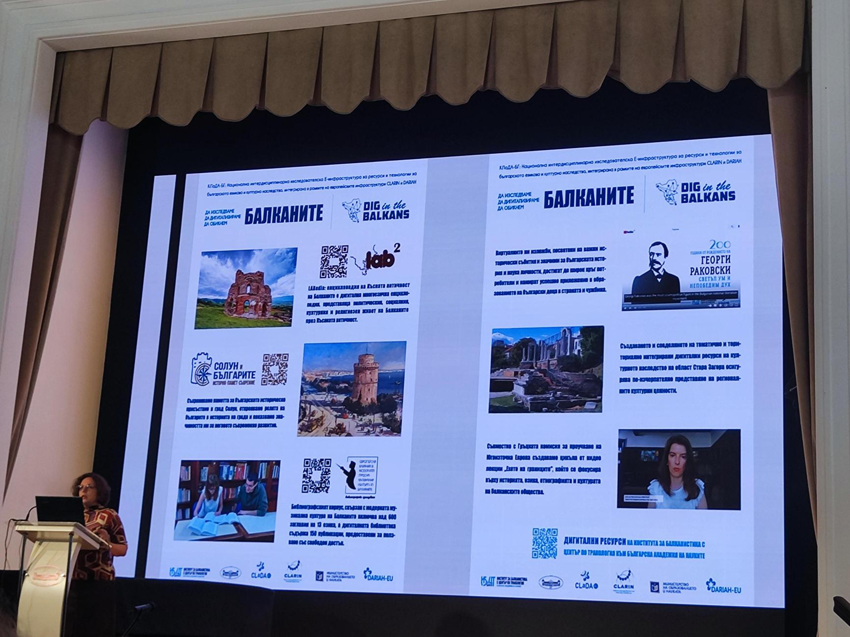 В първата част на събитието бяха изнесени презентации на учени от Института по информационни и комуникационни технологии относно същността и дейността на КЛаДА-БГ, работата с езикови ресурси и употребата на 3D технологии. Презентации изнесоха и представители на Института по математика и информатика, Софийския университет “Св. Климент Охридски”, Института по балканистика с Център по тракология и Шуменския университет “Епископ К. Преславски”. Докладите бяха на теми, свързани с езикови ресурси и технологии, както и за събиране, изследване и дигитализиране на българското езиково и културно наследство.