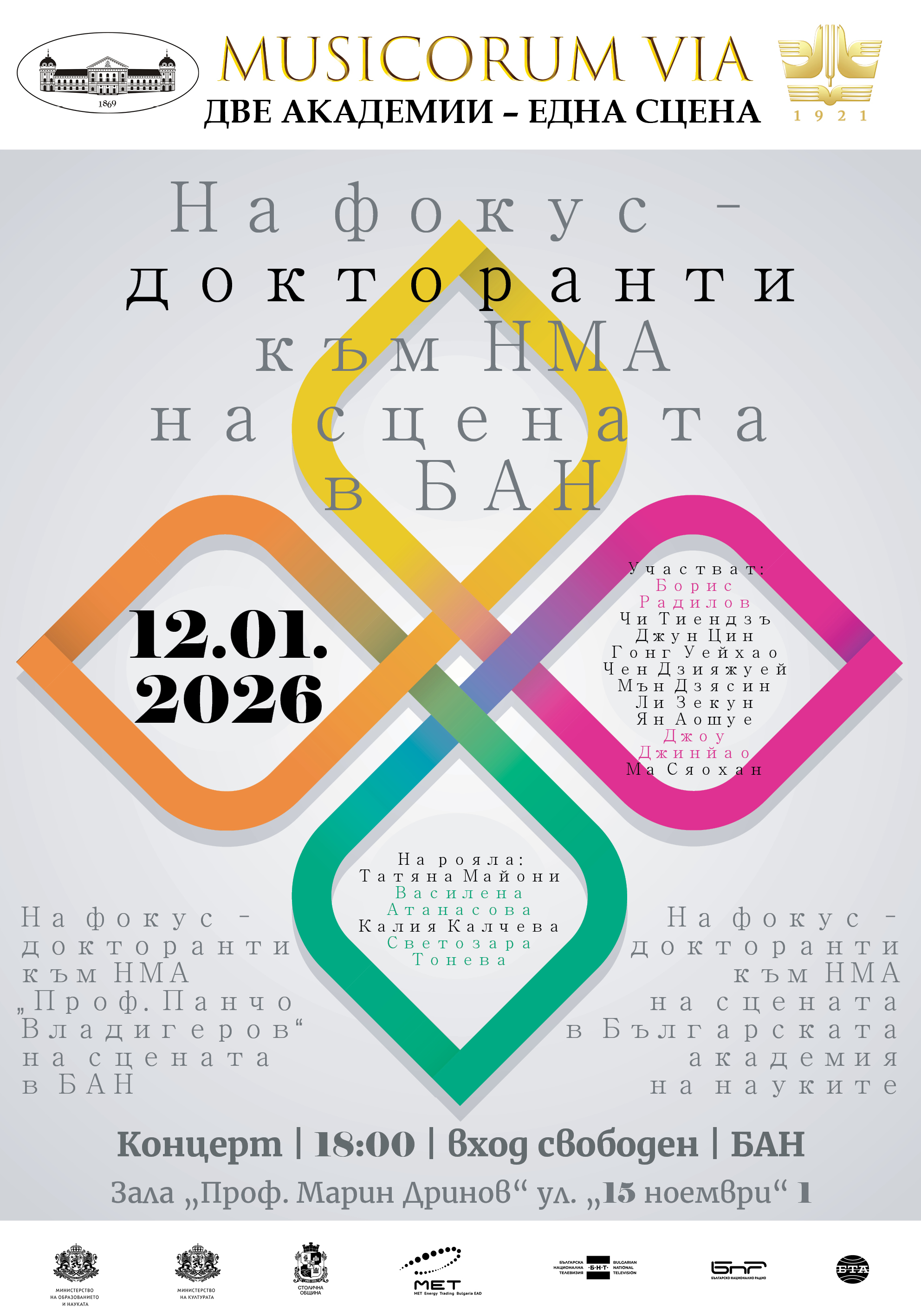 Събитието е част от съвместната инициатива на НМА и БАН – MUSICORUM VIA. Две академии – една сцена.